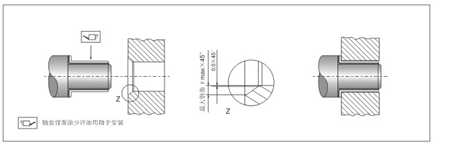 2. 装配时可在轴套外表面适当涂上润滑油,帮助轴套较方便地安装,但不易过多以免在重载或往复运动时轴套会脱离出来。
